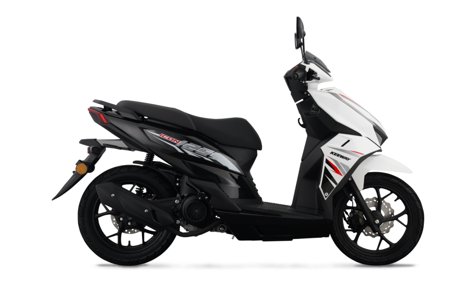 La Keeway ICON 125 es un scooter urbano con un estilo aerodinámico, tecnología esencial y una presencia que destaca. Compacto y ligero, cuenta con un motor de 124cc refrigerado por aire y transmisión automática CVT, perfecto para desplazamientos rápidos y ágiles en la ciudad. La iluminación Full LED, el cuadro de mandos digital LCD y el arranque sin llave la sitúan entre las opciones más modernas para los motoristas que valoran el estilo, la conectividad y las prestaciones prácticas. Con llantas de 14″, freno de disco delantero y carga USB, la ICON 125i está hecha para los desplazamientos diarios y para destacar.
