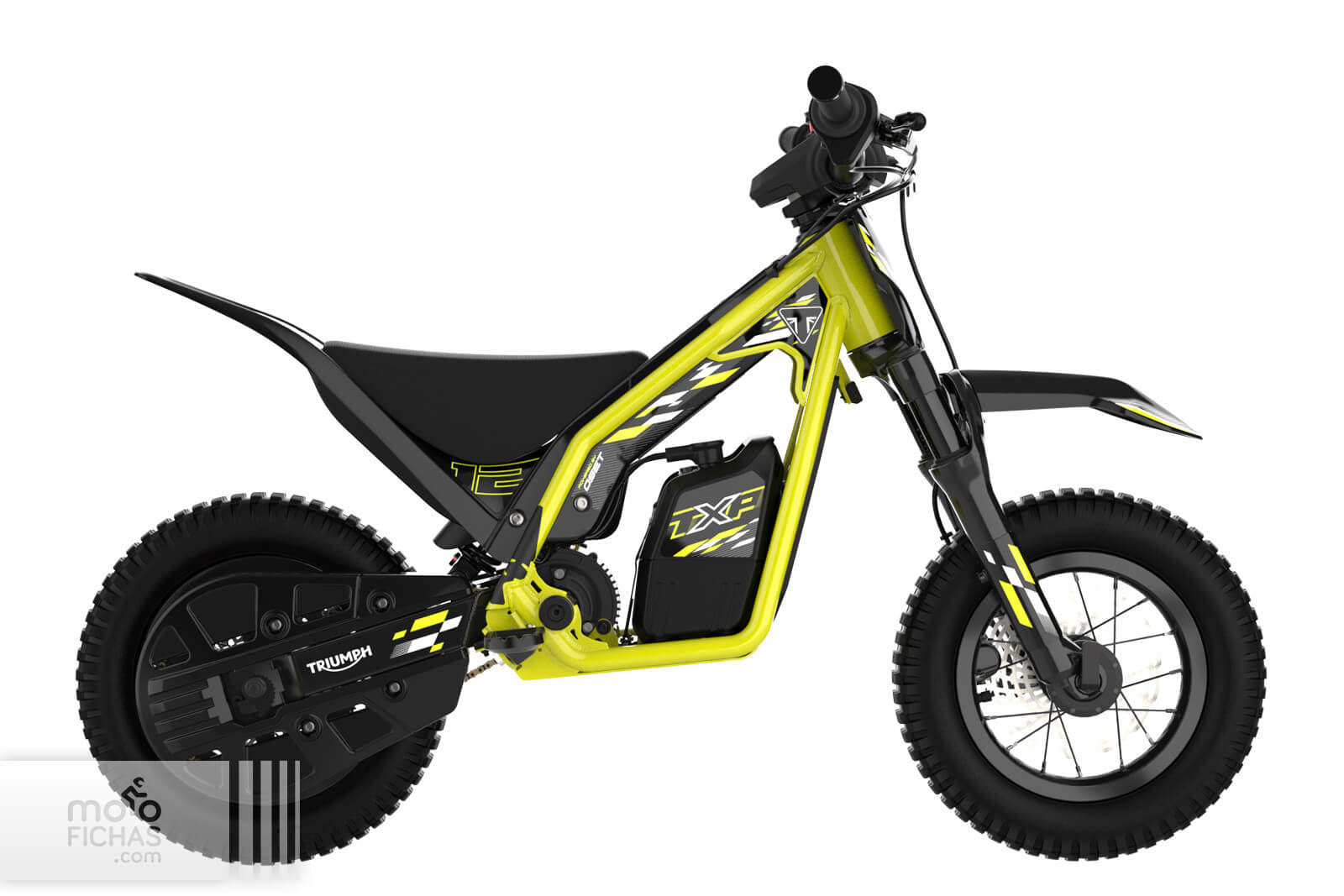 La TRIUMPH TXP-12, es la motocicleta eléctrica infantil, de alta especificación para los pilotos más pequeños que están empezando, mostrándose ideal para realizar los primeros pasos en el mundo del motociclismo, en cualquiera de sus especialidades.